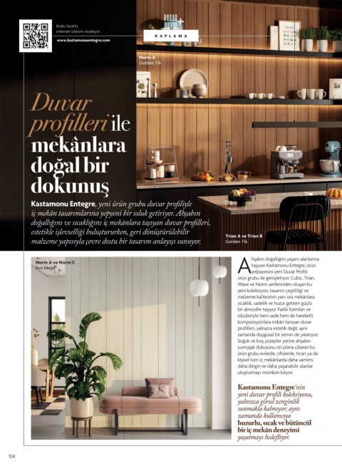 doğallığını ve sıcaklığını iç mekânlara taşıyan duvar profilleri,