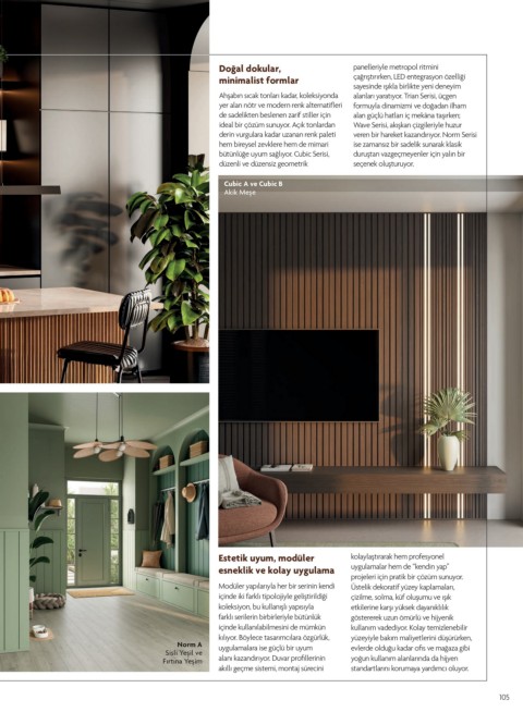 Modüler yapılarıyla her bir serinin kendi Üstelik dekoratif yüzey kaplamaları,