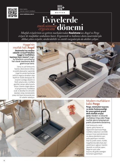 Mutfak eviyelerinin ses getiren markalarından Realstone’un Angel ve Perge