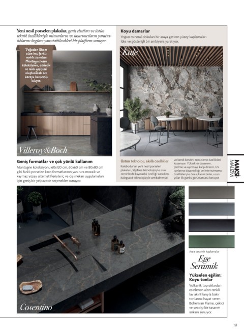 teknik özellikleriyle mimarların ve tasarımcıların yaratıcı- Yoğun mineral dokuları bir araya getiren yüzey kaplamaları