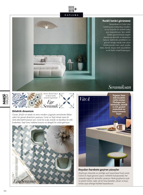Ege Seramik ve pastel tonları sade, şık bir hava katarken, aksan ve koyu