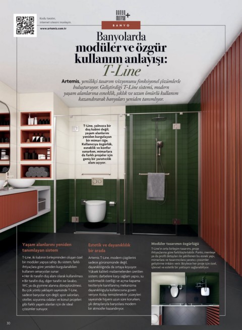 T-Line, iki kabinin birleşiminden oluşan özel Artemis T-Line, modern çizgilerini ya da profil detayları ile şekillenen bu esnek yapı,