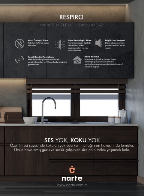 Özel filtresi sayesinde kokuları yok ederken mutfağınızın havasını da temizler.