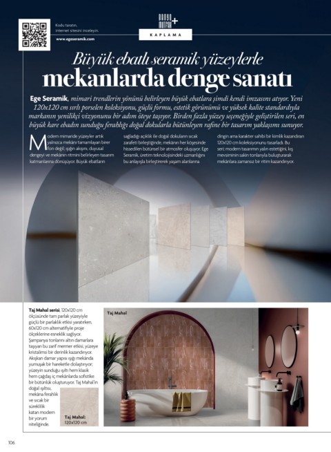 Ege Seramik, mimari trendlerin yönünü belirleyen büyük ebatlara şimdi kendi imzasını atıyor. Yeni