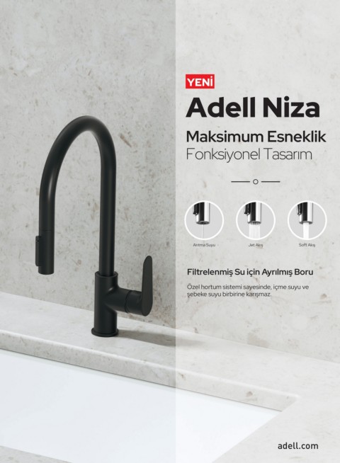 Adell, banyo, mutfak, duş başta olmak üzere gelişmiş bir armatür portföyüne sahiptir.   YENİ