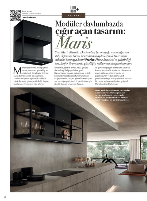 bu alanlar evin merkezi, tüm ailenin alıcı bir tasarım unsuru da. Tasarım Maris Modüler Davlumbaz.