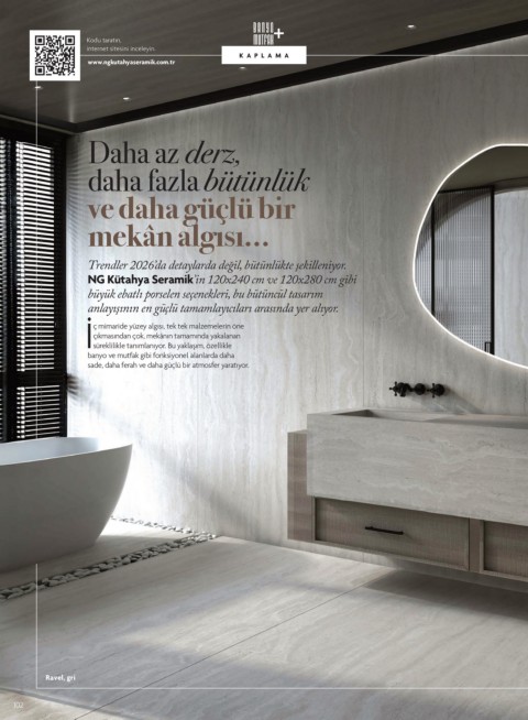 büyük ebatlı porselen seçenekleri, bu bütüncül tasarım