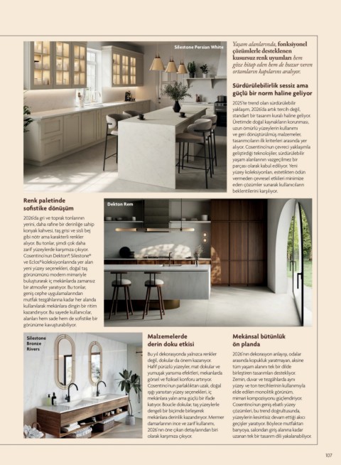 görsel ve fiziksel konforu artırıyor. Zemin, duvar ve tezgâhlarda aynı