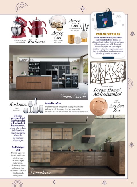 Ciel Parlak metalik detaylar, mutfaklara