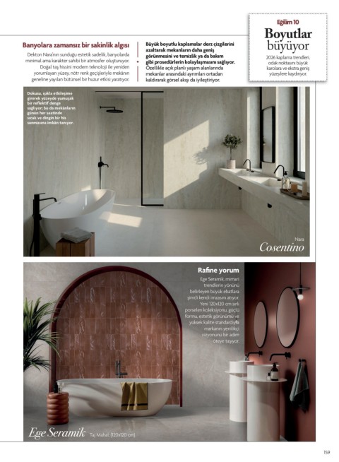 Banyolara zamansız bir sakinlik algısı Büyük boyutlu kaplamalar derz çizgilerini Boyutlar