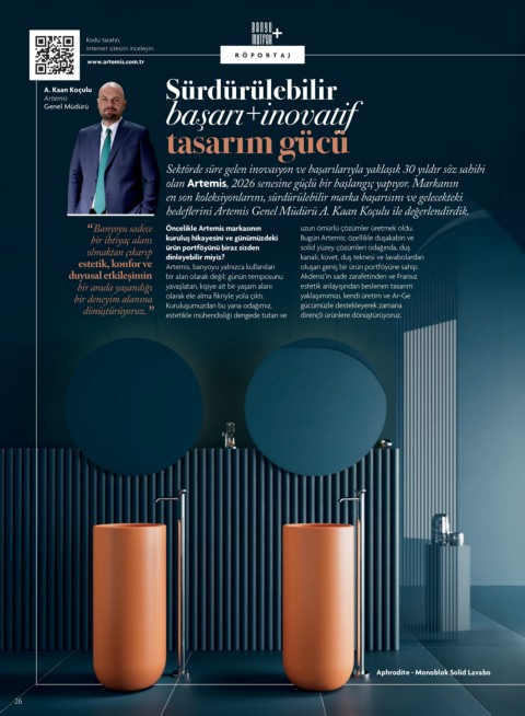 “ Banyoyu sadece Öncelikle Artemis markasının uzun ömürlü çözümler üretmek oldu.