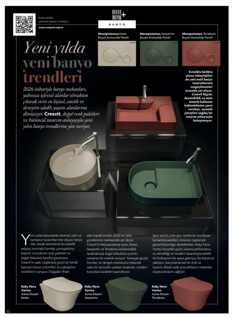 dönüşüyor. Creavit, doğal renk paletleri yüzeyleri çağdaş bir