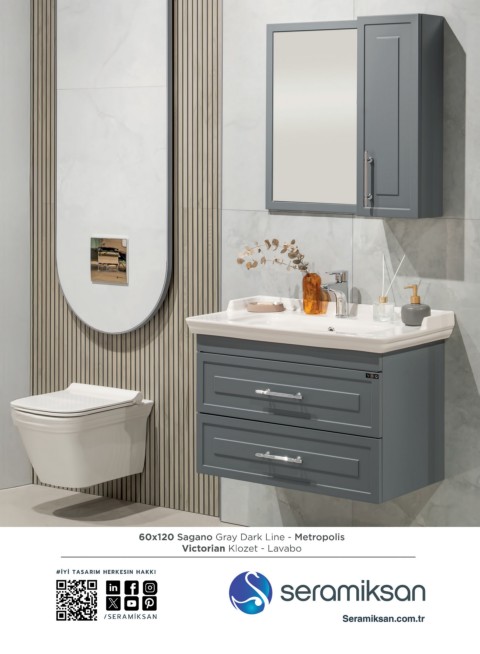 60x120 Sagano Gray Dark Line - Metropolis Victorian Klozet - Lavabo