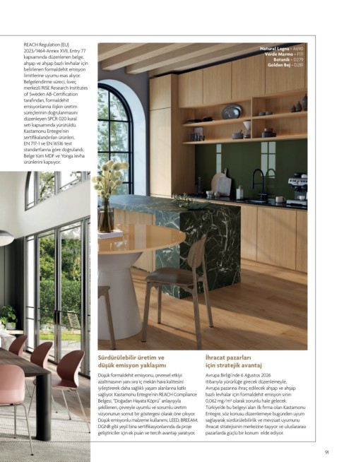 sağlıyor. Kastamonu Entegre’nin REACH Compliance bazlı levhalar için formaldehit emisyon sınırı