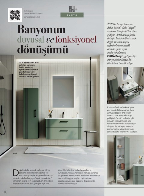 Dalıyor. Mat yüzeyler, ahşap etkileri ve taş/ bir görünüm veriyor. ORKA Banyo’nun Bari serisi de